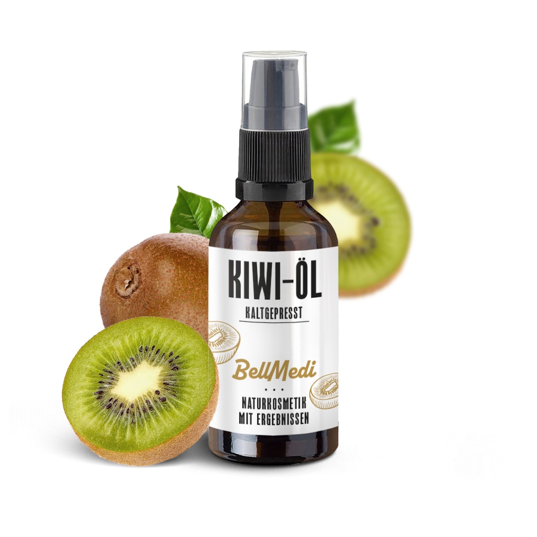 Kiwiöl ist ein 100 % sortenreines, unraffiniertes Öl von höchster Qualität, das durch schonende Kaltpressung aus den feinen Samen der Kiwi (Actinidia chinensis) gewonnen wird. Da die Samen nur einen sehr kleinen Teil der Frucht ausmachen, zählt dieses Öl zu den besonders wertvollen kosmetischen Ölen.
