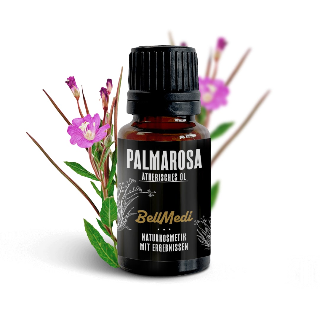Bellmedi nutzt Palmarosaöl in hochwertigen Pflegeprodukten, um Haut, Geist und Körper in Balance zu bringen. Es eignet sich für fettige, zu Akne neigende Haut ebenso wie für trockene Hautstellen.