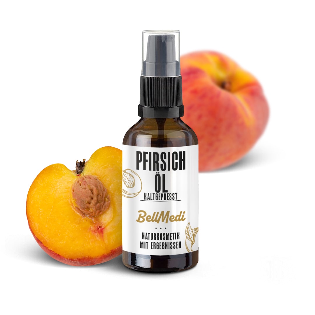 Pfirsichkernöl wird durch Kaltpressung aus Pfirsichkernen gewonnen und zählt zu den luxuriösesten, nicht austrocknenden kosmetischen Ölen.